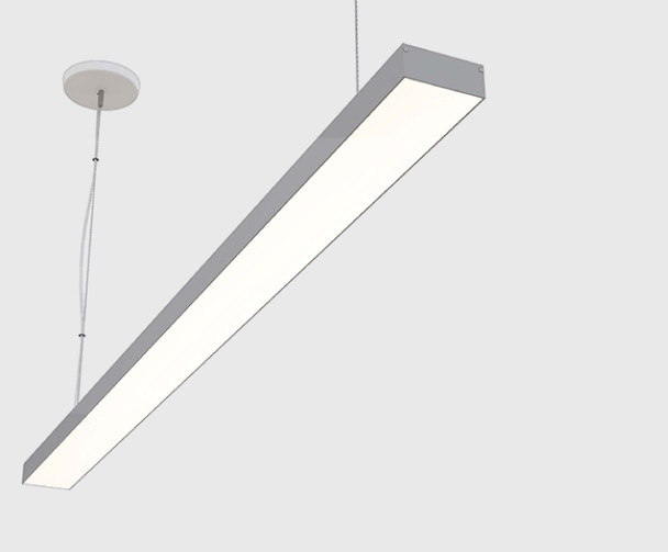 A slim and attractive pendant mounted linear fixture, our 4ft LVLBP8 is a 3 Inch wide linear light fixture that can be suspended from any ceiling type and is suitable for a wide range of general, retail, or hospitality lighting applications. Its low-voltage design (must be powered through a remote driver/power-supply) allows this fixture to have a slim (1.3" high) design. It can be used in residences, offices, retail spaces, hotels, restaurants, and more. It comes in a satin aluminum finish and is available in a wide variety of color temperatures, and either standard output (304 lumens/ft) or high-output (558 lumens/ft) configurations. View Spec Sheet Here!